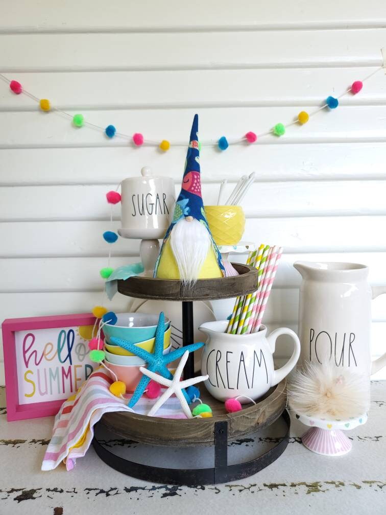 Our eye-catching beach Tomte is an ideal addition to your summer decor! Display him on your mantel, tiered tray or on a shelf to provide a cheerful touch to your summer set up.