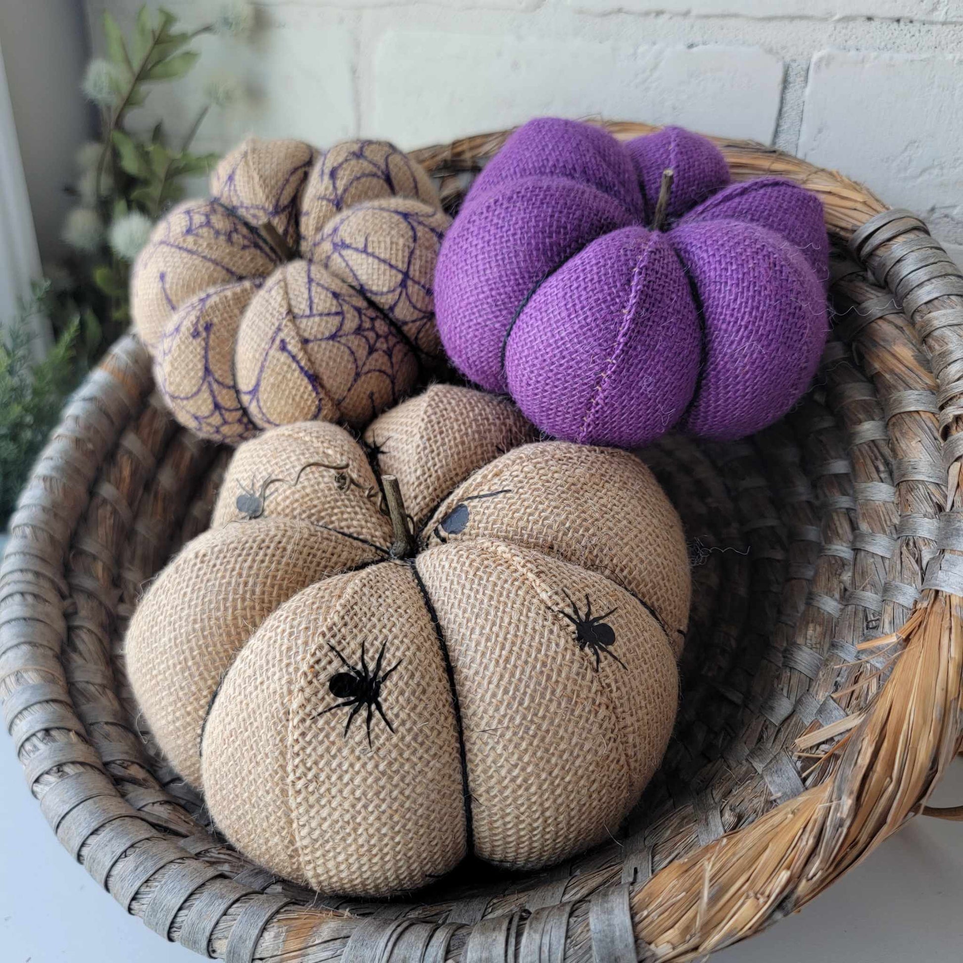 Burlap Spider Pumpkin Trio
