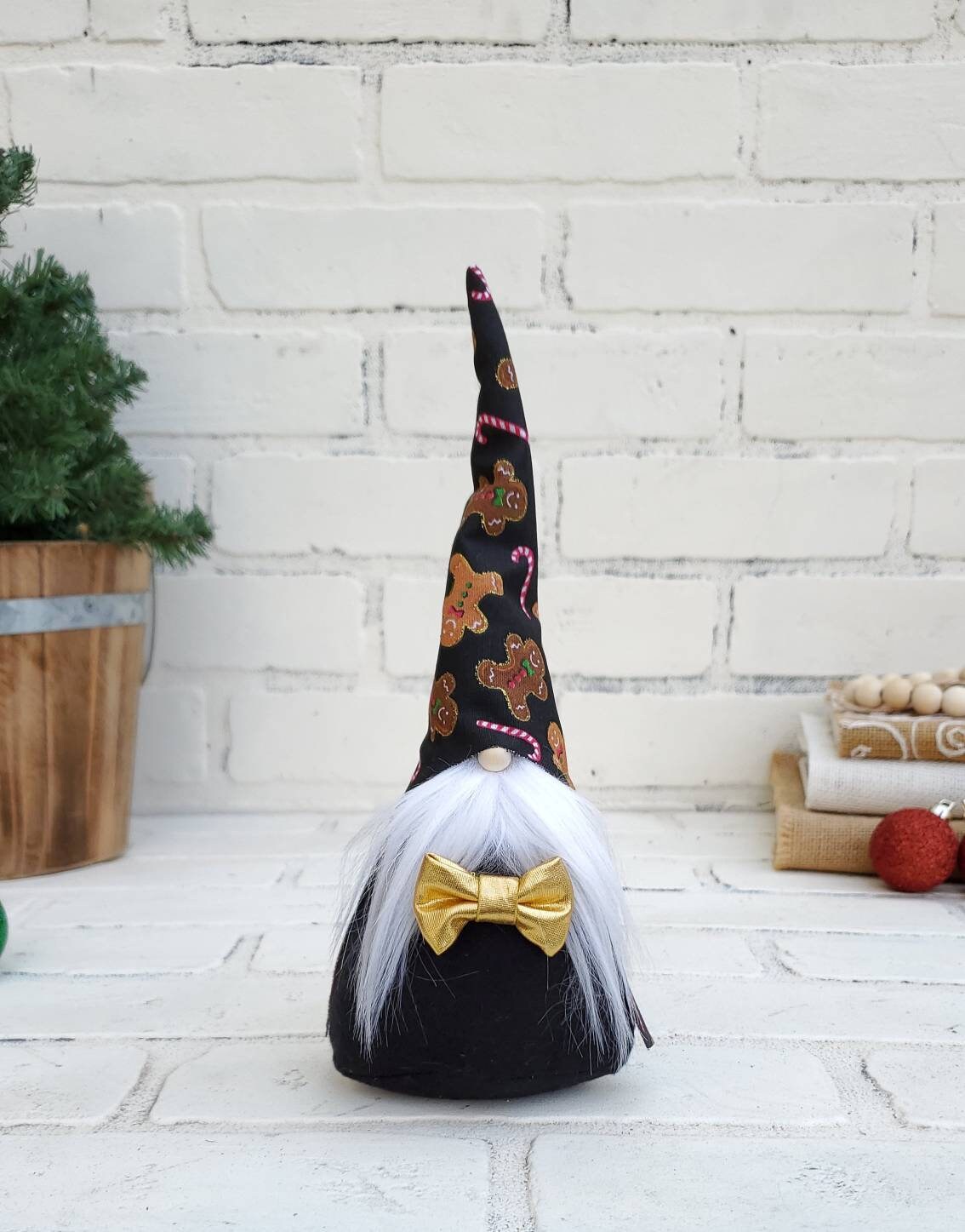 You'll receive one handcrafted Tomte, finished with Black accenting Gingerbread and Candy Cane hat, made from your chosen body fabric. Each Gnome is filled with poly-fil for optimum softness and features a rice-filled base to ensure secure standing. Lastly each gnome is finished with a fur beard and wooden nose for a complete look.
