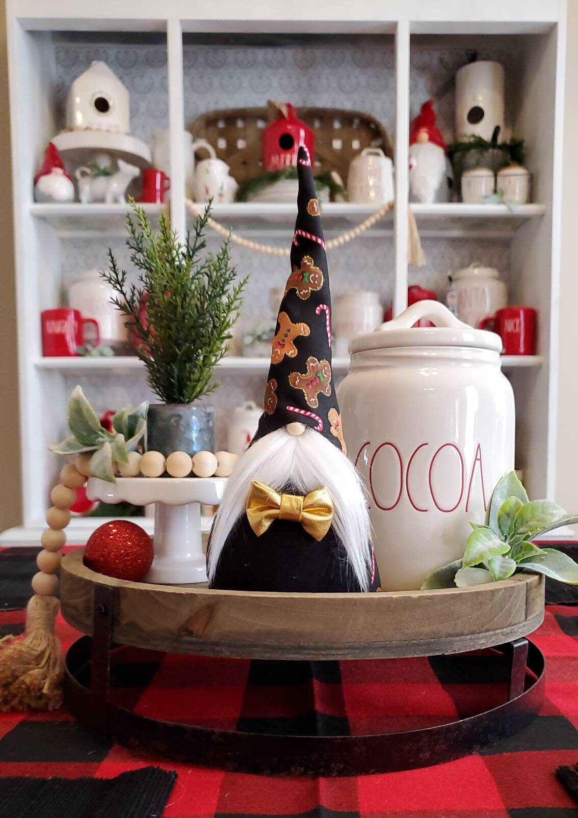 Our charming Gingerbread & Candy Cane Gnome will be an excellent addition to your decor selection! Place him on your hearth or nestle him in your tree for a touch of festive delight during the holiday season.
