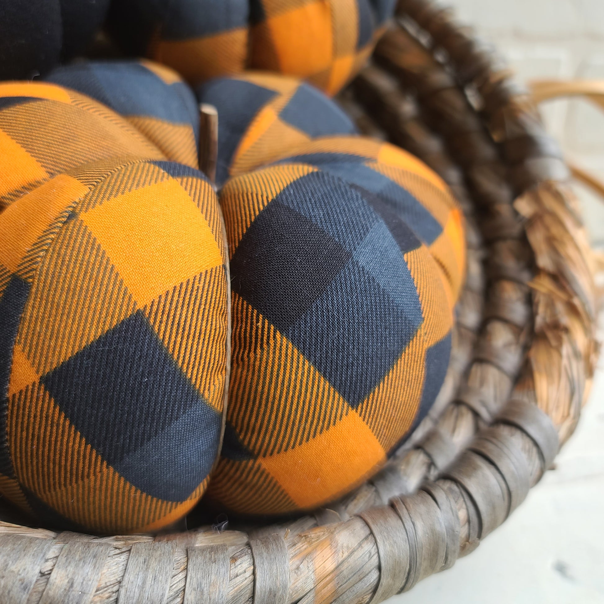 This Buffalo Plaid-designed fabric pumpkin is expertly hand-sewn and filled with a cotton polyfill material to create an accurate and lifelike shape. As a perfect addition to any seasonal decor, the finished pumpkin comes complete with a stem, allowing you to easily add it to your table, basket, or other festive display.