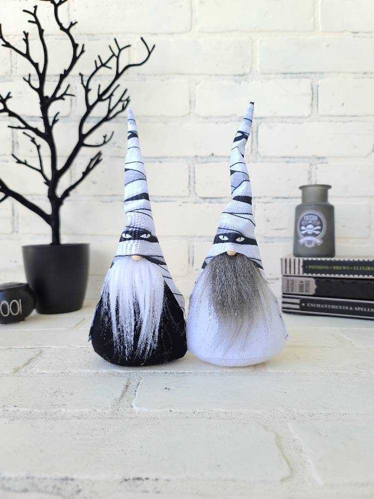 You'll receive one handcrafted Tomte, finished with Black & white Mummy print hat, made from your chosen body fabric. Each Gnome is filled with poly-fil for optimum softness and features a rice-filled base to ensure secure standing. Lastly each gnome is finished with a fur beard and wooden nose for a complete look.